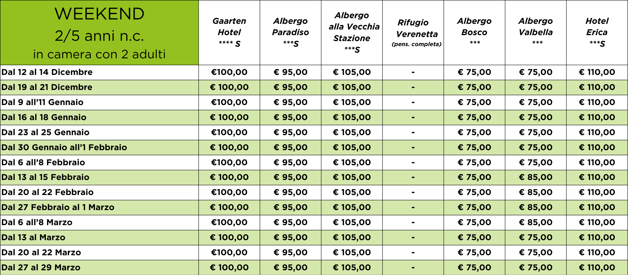 > Periodi e Prezzi > weeend 2-5 anni 3 Luglio